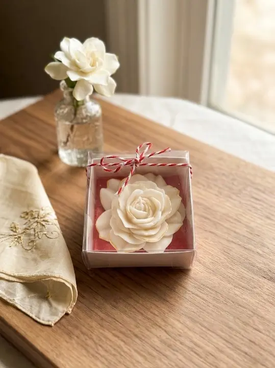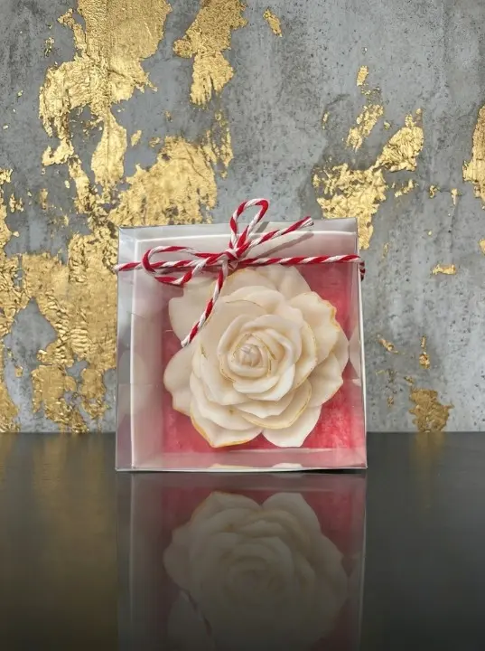 Lumanare parfumata in forma de trandafir, ceara naturala de soia, fitil din bumbac, Handmade